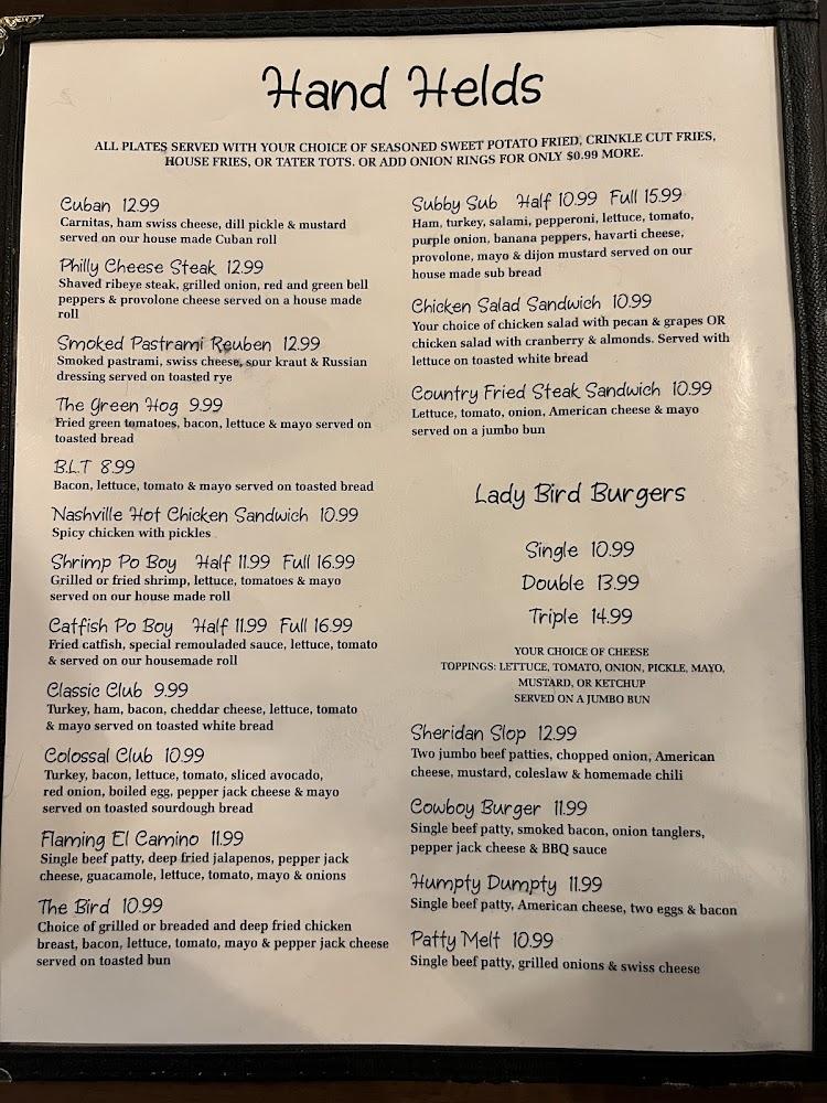 Expect to find house specialties like the Parmesan Crusted Chicken and Open-Faced Roast Beef Sandwich. Options are crafted from seasonal ingredients ensuring each plate is fresh. For lighter appetites, side dishes like Sweet Potato Fries and loaded baked potatoes are perfect for sharing. Desserts may not always be available, but the savory options make up for it. Overall, the tantalizing menu reflects local tastes while incorporating Southern hospitality, making every meal memorable.